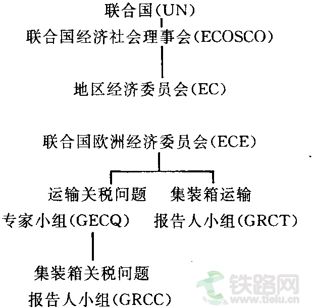 聯合國歐洲經濟委員會是它是聯合國經濟社會理事會(ECOSEO)下屬的地區經濟委員會(EC)之一,成立于1947年3月是為發展歐洲經濟,促進參加國家與其他地區的經濟合作為目的而設立的。本部設在日內瓦。它在發展東西方貿易問題上起著重要作用。其下屬機構之一是內陸運輸委員會,而內陸運輸委員會的下屬機構中有集裝箱運輸報告人小組(GRCT)和集裝箱關稅問題報告人小組(GRCC)。另外,與歐洲經濟委員會同樣性質的組織有:亞洲及太平洋經濟社會委員會(ESCAP),西亞經濟委員會(ECWA),非洲經濟委員會(ECA),拉丁美洲經濟委員會(ECLA)。下圖僅表示與集裝箱運輸有關的組織。