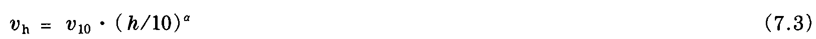 就這些地形類型而言,指數α可分別取0.12、0.16、0.22和0.28,見[7.1]。式(7.3)采用的風速值是在10min或1h周期內求出的平均值。請查閱[7.2],以便按地區確定風速的設計值。