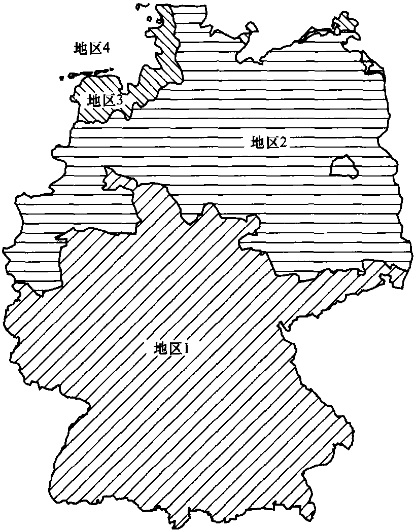 圖7.1 根據標準ENV1991-2-4繪制的德國風區圖