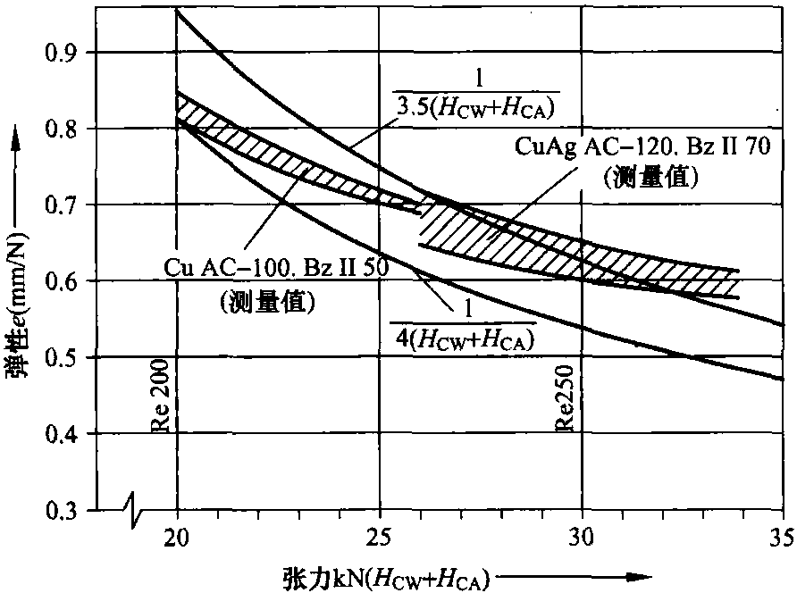 圖9.40 德國鐵路AG公司采用的Re100、Re160、Re200和Re250型標準架空接觸網(wǎng)的彈性