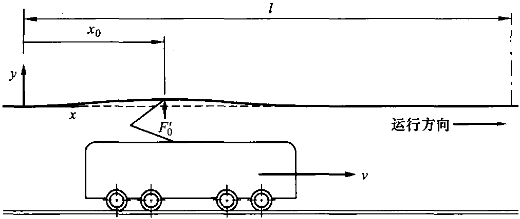 為描述當(dāng)接觸線在受電弓以恒力F′0作用于接觸線上并按照一定速度v (圖9.2) 沿接觸線運(yùn)行時的接觸線特性,可以把微分方程式 (9.4) 表示為