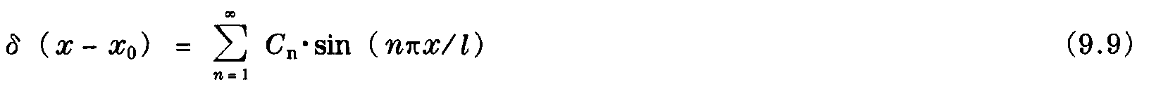 在式(9.7) 中,δ(x-x0) 是一個具有δ (0) = 1和δ (x≠0) =0特性迪拉克(Dirac)三角函數(shù)。應(yīng)用已知的邊界條件,三角函數(shù)可以轉(zhuǎn)換成傅立葉級數(shù)