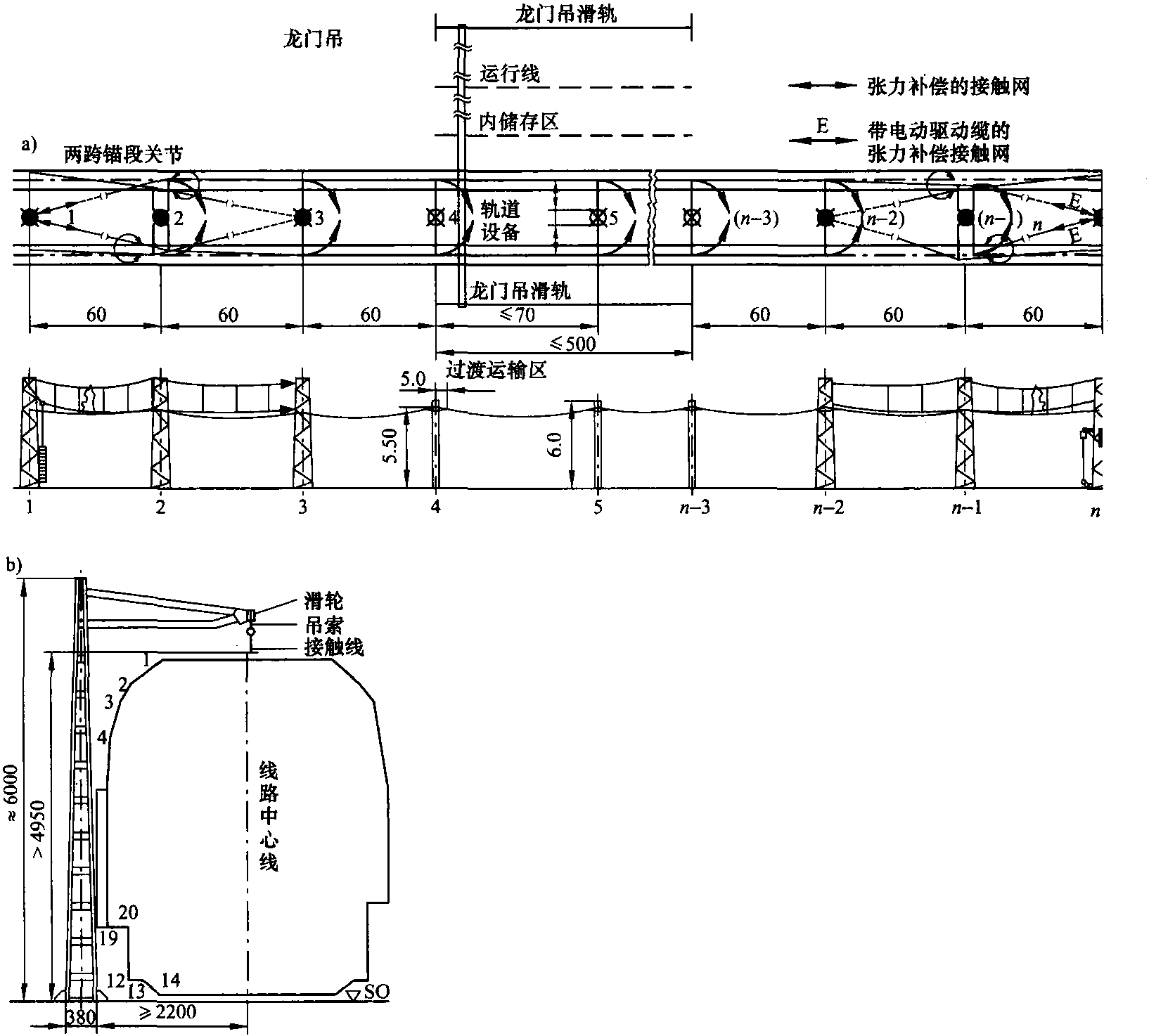 圖8.30 集裝箱終點站的水平旋轉接觸網