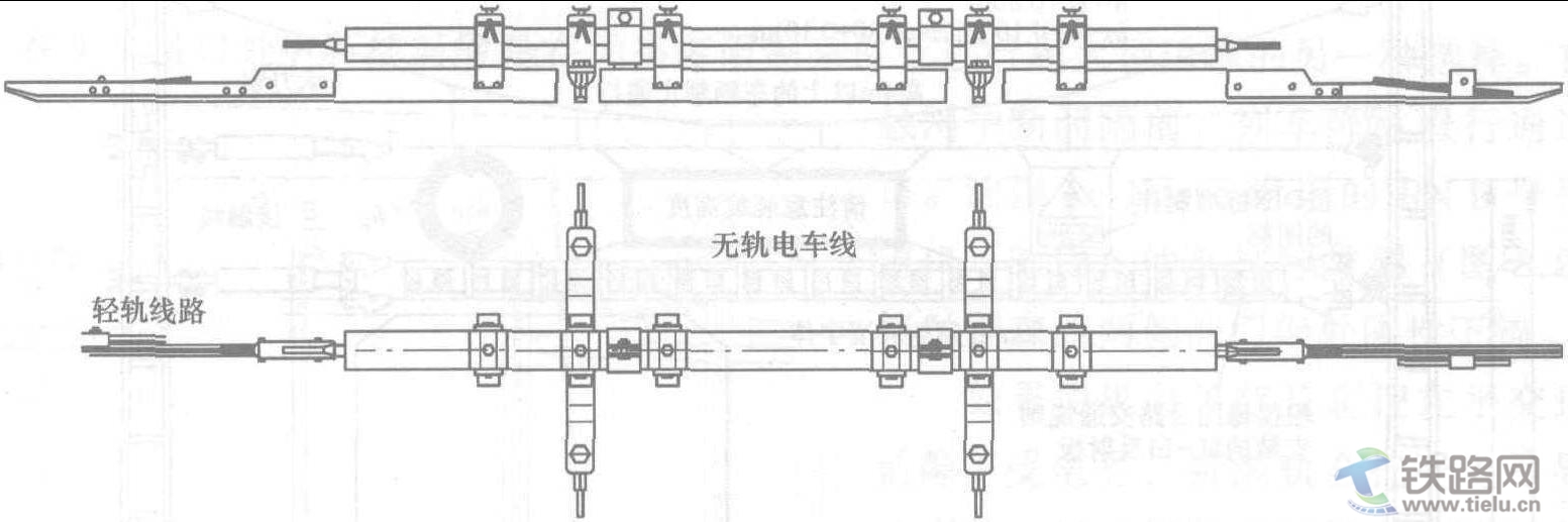 圖8.22 輕軌與無軌電車斜角交叉的接觸網布置