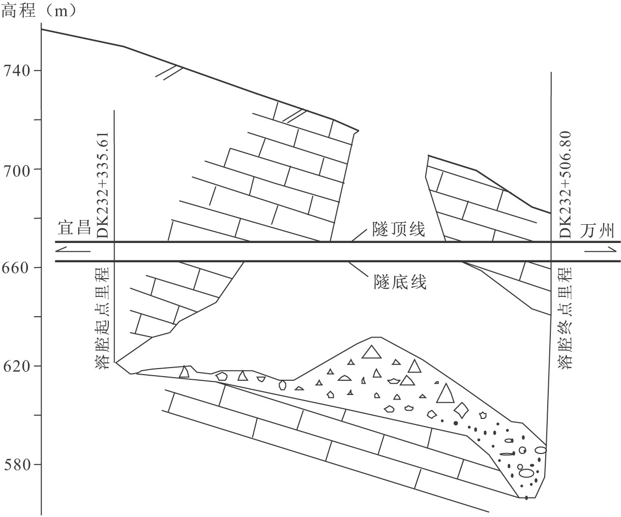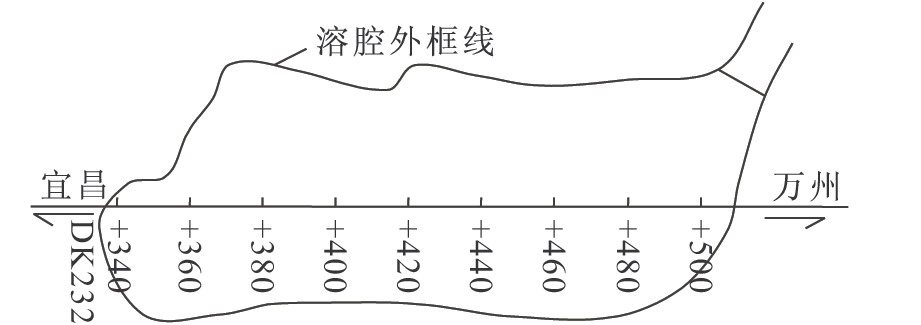 龍麟宮隧道出口位于宜萬鐵路DK232+335~+506地段發育特大型溶腔,十分罕見。