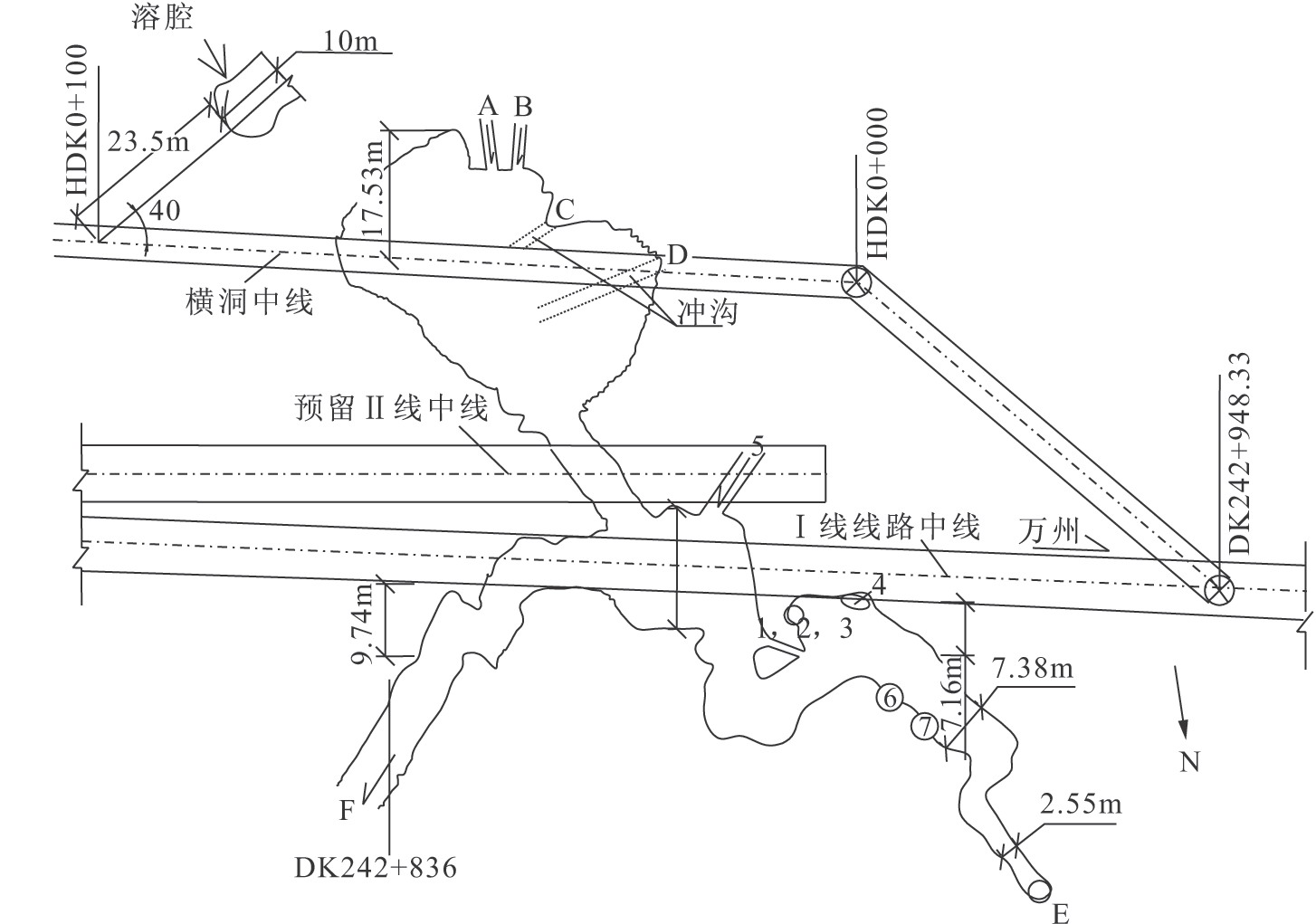 圖2-39云霧山隧道DK242+852溶腔平面示意圖