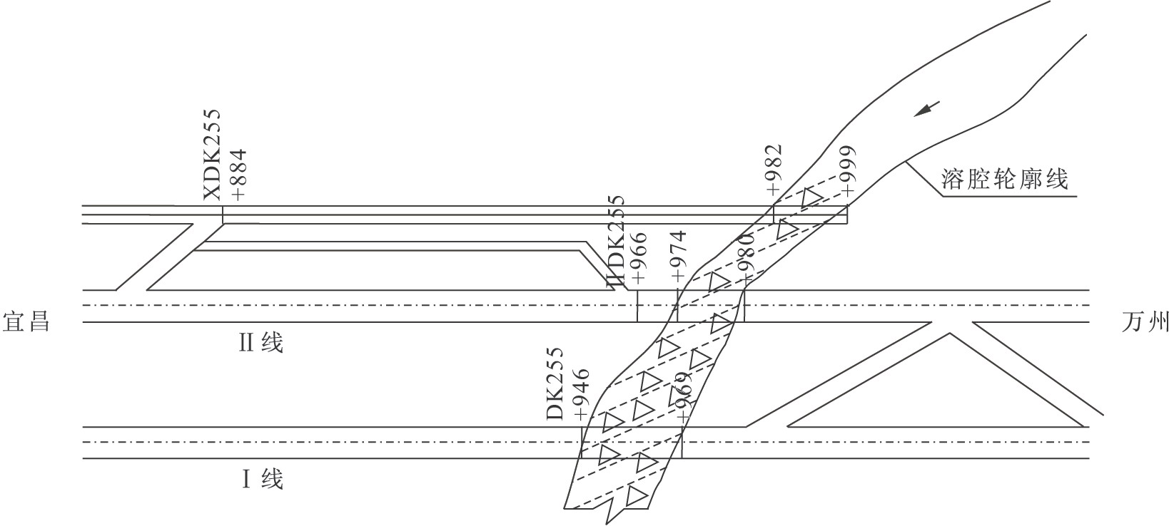 圖2-50馬鹿箐隧道DK255+978溶腔平面示意圖