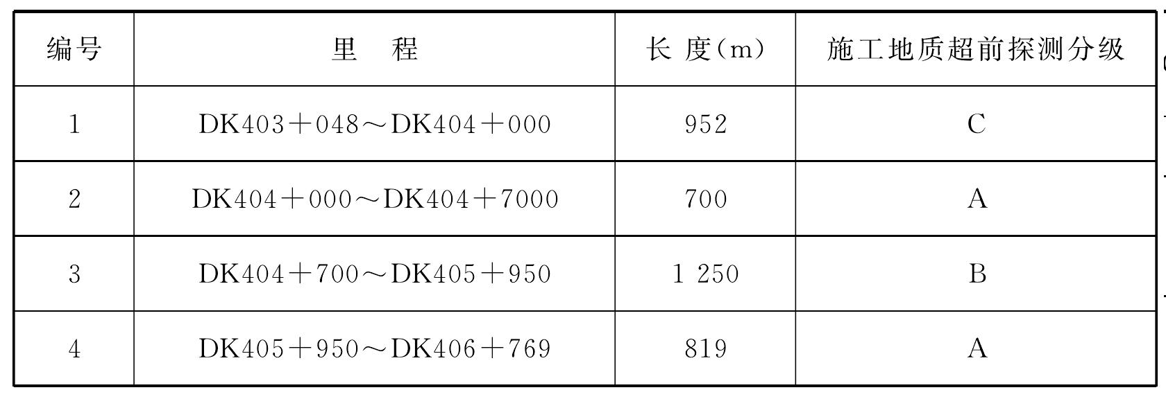 表6-6別巖槽隧道施工地質超前探測分級表