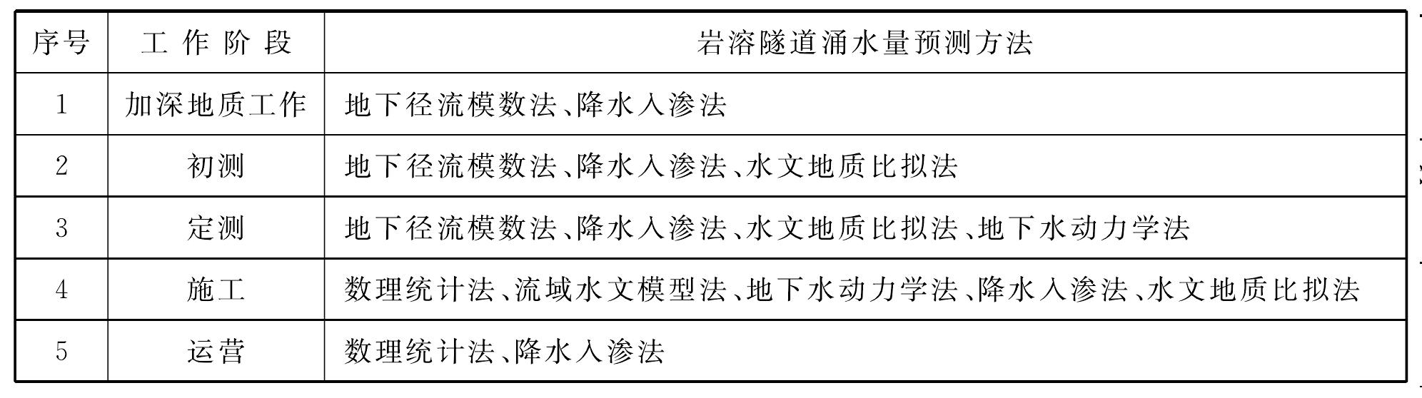 表7-3按工作階段選擇巖溶隧道涌水量預(yù)測(cè)方法
