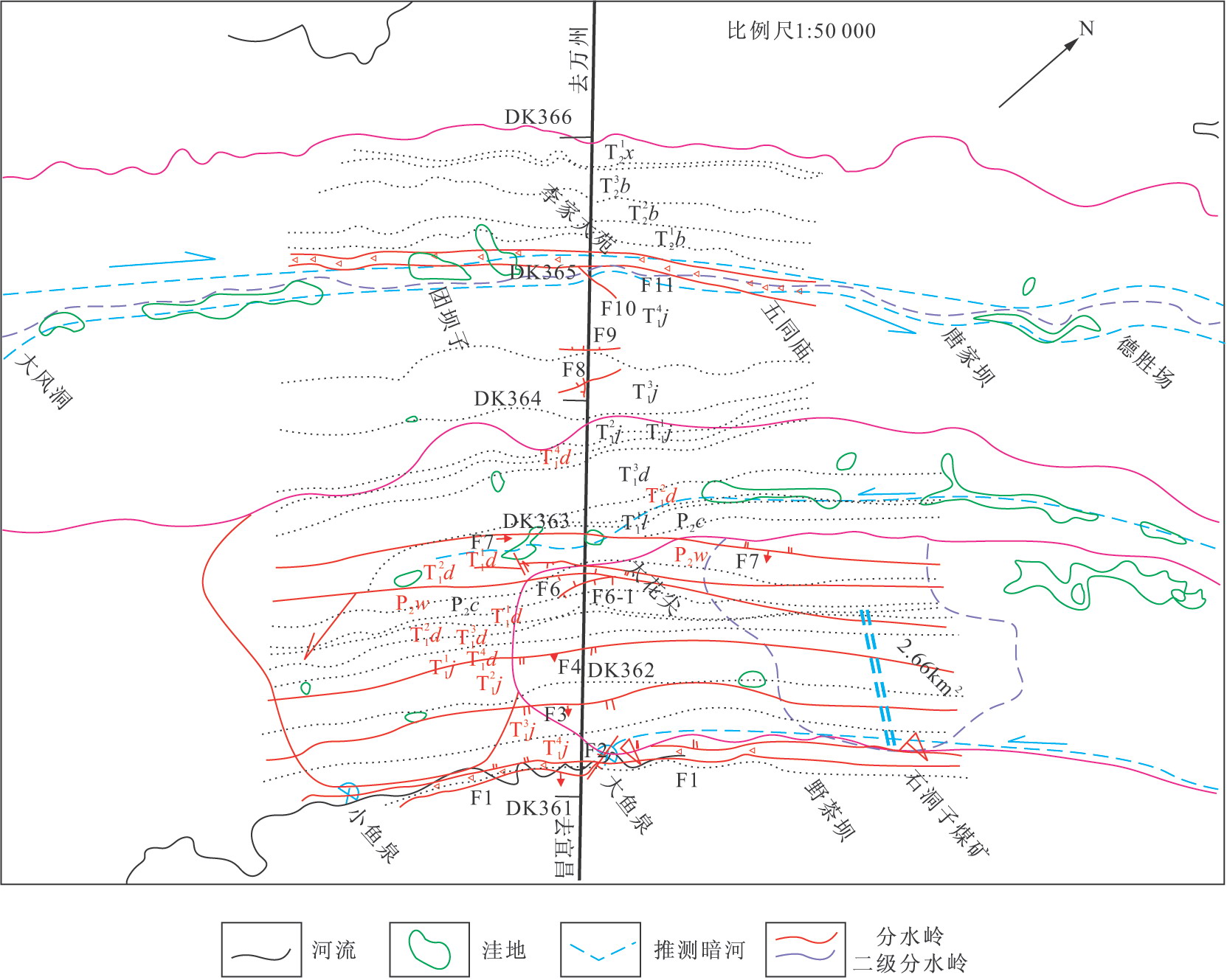 圖7-10齊岳山隧道進口段巖溶水文地質(zhì)略圖