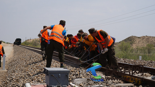 8月22日,對(duì)中鐵二十局四公司23隊(duì)(集通項(xiàng)目路橋二隊(duì))而言,今天是緊張而忙碌的一天,只因今天將完成兩個(gè)幾乎同時(shí)進(jìn)行的封鎖計(jì)劃,其中一個(gè)便是查干芒和-蘇木特(含下行進(jìn)站信號(hào)機(jī)至上行進(jìn)站信號(hào)機(jī)間正線線路)-牙拉蓋圖的180分鐘途卸長(zhǎng)軌封鎖計(jì)劃,主要在K275+000至K286+800處作業(yè)。在8月21日接到封鎖計(jì)劃之后項(xiàng)目部技術(shù)總工王利章、安全總監(jiān)張世雄及路橋二隊(duì)隊(duì)長(zhǎng)凌磊立即組織管理人員及安全技術(shù)人員在隊(duì)部會(huì)議室召開會(huì)議研討次日卸軌計(jì)劃。對(duì)施工任務(wù)進(jìn)行了合理的部署與安排。 本次計(jì)劃為跨區(qū)間途卸長(zhǎng)軌3.5公里,過(guò)軌7對(duì)。