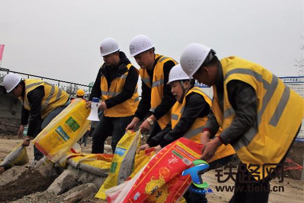 該項目部承建的哈牡鐵路電氣化改造工程一標段全長150多公里,在建的立交橋、框架涵等構造物28處,防洪形勢嚴峻。為了強化一線職工抗洪搶險的緊迫感和應對汛期突發事件的能力,在中原監理公司的見證下,應急演練模擬在建的濱綏鐵路K42阿什河中橋受連續強降雨侵襲,河水漫堤,現場安全受到威脅。演練中,38名搶險隊員疾步進入現場,搶險救援、治安保衛、醫療救護、后勤保障等小組成員按照分工各負其責,現場周圍拉起了警戒線,設置了醒目的警示標志。伴隨著轟鳴的機械聲,三臺挖掘機開始清理河道,兩臺潛水泵不間斷抽水作業。搶險人員有的緊急灌裝砂袋,有的扛起幾十斤重砂袋急馳趕往60米外的水毀地段,壘壩筑堤、加固圍堰,并覆蓋塑料布防止洪水沖涮,現場一派緊張忙碌。經過50多分鐘的決戰,“險情”解除現場恢復了平靜,演練圓滿結束。