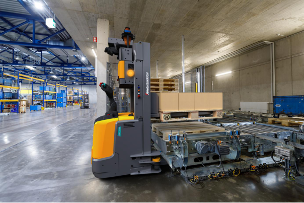 BLG選用AGV旨在使Bremen物流中心的內(nèi)部托盤(pán)運(yùn)輸系統(tǒng)部分實(shí)現(xiàn)自動(dòng)化。憑借其激光掃描儀,ERC 213a可以在倉(cāng)庫(kù)中獨(dú)立導(dǎo)航行駛。同時(shí),AGV能夠識(shí)別不同的載物架,即使它們尺寸過(guò)大,并可以堆放空托盤(pán)。