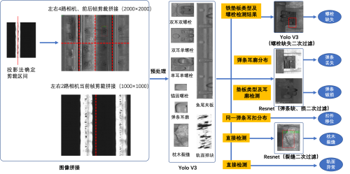 常見(jiàn)的軌道表面?zhèn)z測(cè)一般是,先利用工務(wù)巡檢車(chē)上的成像裝置對(duì)軌道進(jìn)行高清成像,再采用人工的方式進(jìn)行檢查,但這種方式存在效率低、滯后性強(qiáng)等問(wèn)題。而基于飛槳的“軌道在線智能巡檢系統(tǒng)”安裝在綜合檢測(cè)車(chē)底,在檢測(cè)車(chē)行駛過(guò)程中,對(duì)軌道表面及其緊固件進(jìn)行掃描成像,同時(shí)利用邊緣嵌入式GPU設(shè)備,實(shí)時(shí)檢測(cè)軌道表面及其緊固件缺陷。檢測(cè)結(jié)果通過(guò)車(chē)內(nèi)展示系統(tǒng)呈現(xiàn),并由分析人員最終確認(rèn)缺陷結(jié)果,形成缺陷報(bào)表。