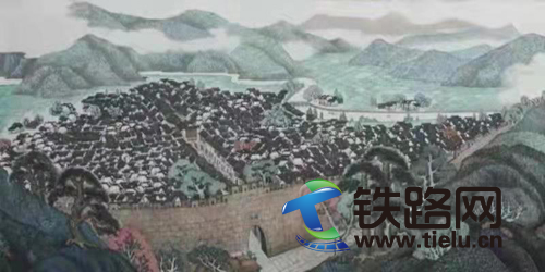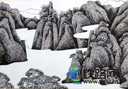 ①碳筆鋼筆山水畫《百村千憧圖》百米長卷的局部,由288張冊頁連接而成。