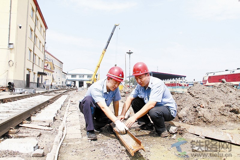近日,三棵樹機務段整備場在升級改造施工時,在地下接近兩米處發(fā)現(xiàn)了鋪設著石砟、木枕的 “三股鐵道”。三根鋼軌平行間距均為75厘米,其方向與該段內(nèi)的現(xiàn)有南北線路呈十字形交叉,為東西走向。