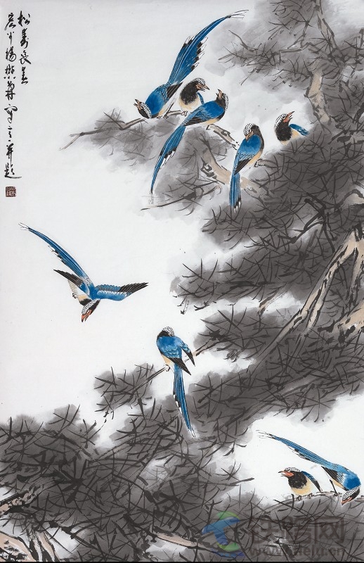 1992年楊懋森應(yīng)邀創(chuàng)作的 《春光爛漫圖》在天安門城樓上亮展;1985年創(chuàng)作的 《雙壽圖》參加中國(guó)美協(xié)、中國(guó)書協(xié)聯(lián)展獲二等獎(jiǎng);2006年應(yīng)邀在韓國(guó)首爾舉辦了楊懋森中國(guó)花鳥畫個(gè)人展;由孫其峰題款的 《楊懋森花鳥作品集》一經(jīng)出版發(fā)行便好評(píng)如潮;2013年其以髦耋之年創(chuàng)作的橫3.5米、縱1.45米的巨幅力作 《百鳥朝鳳圖》更是令人拍案叫絕。畫面里工中有寫,寫中有工,讓觀者感受到百鳥舞天地的大美生命氣象。