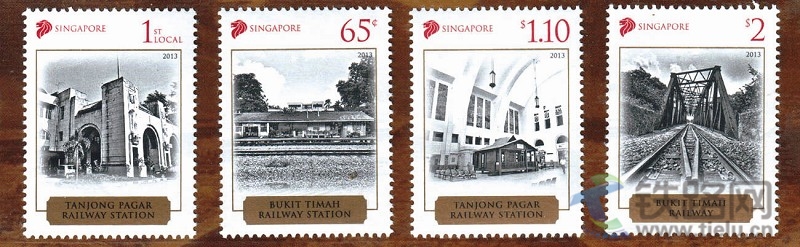 《新加坡老火車站》郵票一套4枚,圖案分別是新加坡丹戎巴葛火車站、武吉知馬火車站的容貌和武吉知馬鐵路。