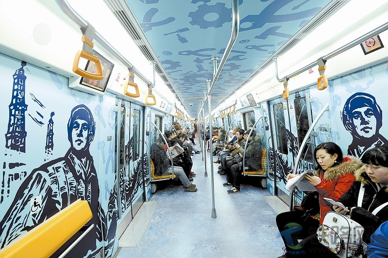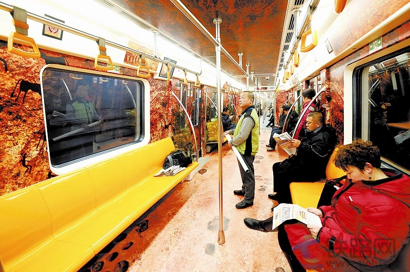 近日, “沈陽歷史”主題地鐵列車亮相沈陽地鐵2號線。該列車包括 “新樂初民” “血沃黑土” “國之長子” “地鐵時代” “鳳凰涅?”等6節車廂。車廂內通過一系列繪畫及裝飾,讓乘客近距離感受沈陽的歷史變遷。圖一為 “國之長子”列車車廂。圖二為 “新樂初民”車廂。張文魁 攝