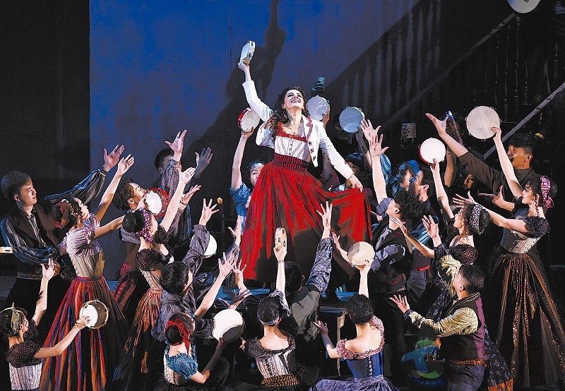2月27日,國家大劇院制作版歌劇 《卡門》繼續上演。歌劇 《卡門》是法國作曲家比才的傳世之作,講述了吉卜賽姑娘卡門追逐愛與自由的故事。國家大劇院制作版歌劇 《卡門》創排于2010年,在歷經5輪熱演后,再度回歸大劇院舞臺。圖為飾演卡門的意大利女中音歌唱家朱賽皮娜·皮翁蒂 (中)在歌劇 《卡門》的演出中。 羅曉光 攝