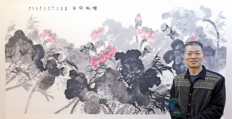 圖一為何子華在展示他的作品。