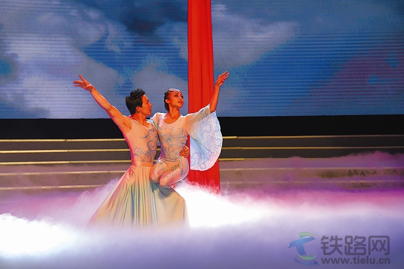 男女聲表演唱 《拉薩河》、女聲四重唱《行進(jìn)的中國(guó)》與男女聲二重唱 《彩虹兒女》 《絲路彩虹》,以歡快渾厚的曲調(diào)聲展示豪爽真誠(chéng)的民族風(fēng)情。舞蹈 《大青藏》與歌舞 《幸福家園》在為觀眾呈現(xiàn) “天路之旅”的同時(shí),深情地歌頌了黨和國(guó)家將鐵路修到藏族兒女家門口的恩情。