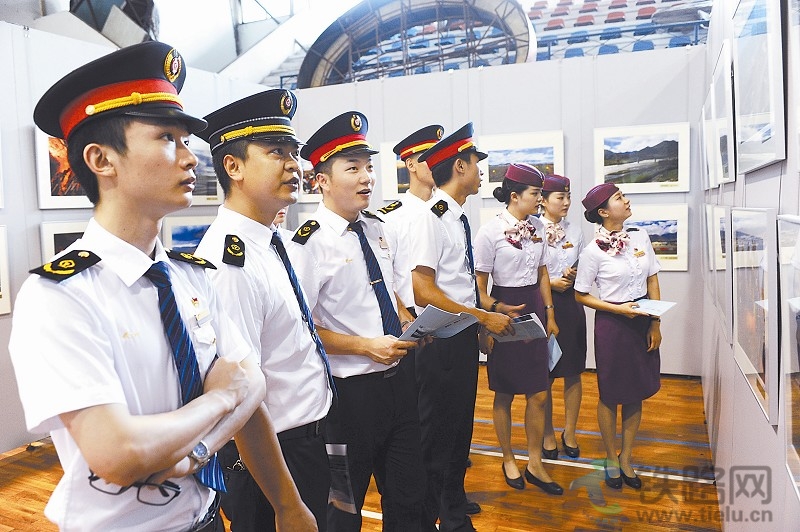 圖為成都客運段列車乘務員正在觀看攝影展。 曹 寧 文并攝