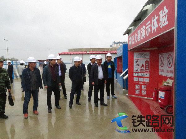 2018年9月27日,由慶陽市西峰區(qū)區(qū)委常委、常務副區(qū)長馬耀文帶隊,西峰區(qū)消防大隊、商務局、安監(jiān)局、工信局、國土局等相關部門負責人等領導組成的督察組在中鐵十九局銀西三標指揮長孔憲斌、黨委書記賈忠東等同志的陪同下,對西峰軌枕廠項目國慶節(jié)前安全生產工作及隱患排查治理專項行動開展情況進行督查。