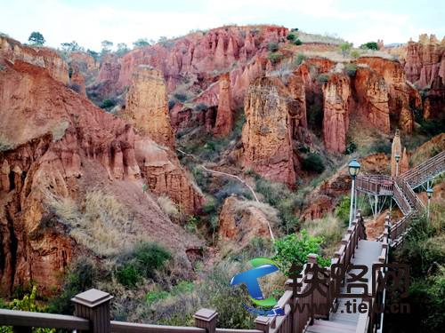 沿著步道在土林中漫游,猶如走進大自然雕塑的藝術魔宮。穿越其間,仰頭可觀賞到“少女梳妝”、“嫦娥奔月”、“八仙過海”、“仙女下凡”、“戰馬騰空”、“雙獅望月”、“雄鷹展翅”等等奇異的造型,如同闖進了神奇莫測的仙境。