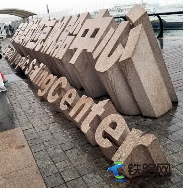 隨著鏡頭的推進(jìn),看到碩大標(biāo)語牌——熱烈慶祝中國人民解放軍海軍建軍70周年,也看到了左右兩邊的國際會議中心和奧運(yùn)五環(huán)等建筑。當(dāng)走近青島奧帆中心門口時(shí),風(fēng)更大,雨更緊,沒帶雨具的我,只好轉(zhuǎn)身緊回。