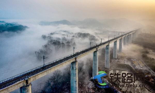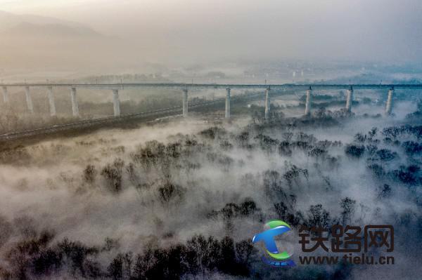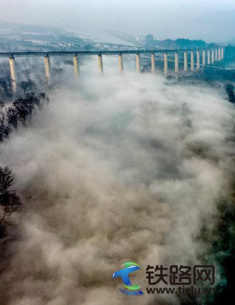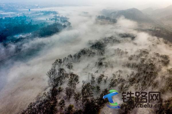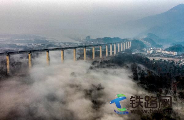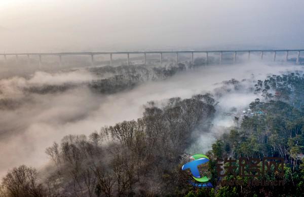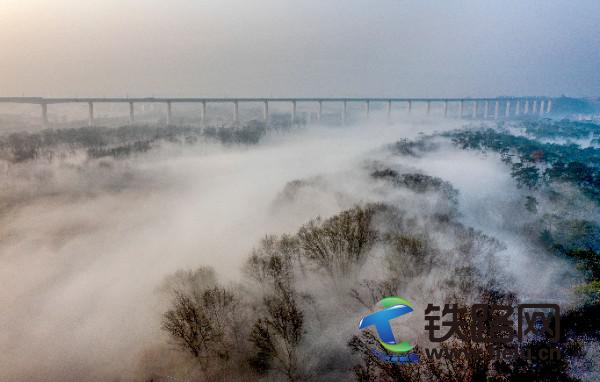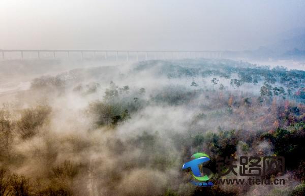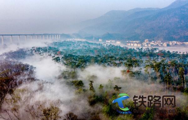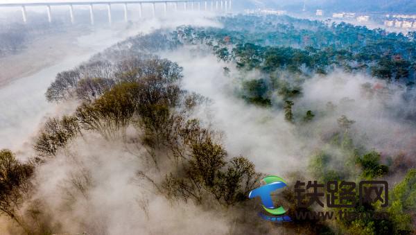 2020年12月25日,浙江省臺州市仙居縣永安溪云霧飄渺,金臺鐵路永安溪特大橋和樹林在云霧中時(shí)隱時(shí)現(xiàn),仿佛置身人間仙境。