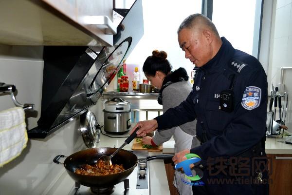 圖5:吳燕與列車運行間隙休息的丈夫為警務區值班民警、保安準備美味豐盛的午餐。
