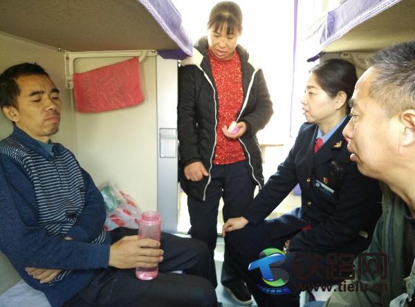 2016年3月6日,列車(chē)像以往一樣在鋼軌上飛馳著,突然對(duì)講機(jī)的急切匯報(bào)打斷了這份寧?kù)o。“白車(chē),白車(chē),15號(hào)車(chē)廂有名旅客昏倒了,請(qǐng)通知廣播找醫(yī)生。”小組長(zhǎng)何文玉著急地匯報(bào)著。列車(chē)長(zhǎng)白莉云已最快的速度趕到了15號(hào)車(chē)廂探望生病旅客,并詢問(wèn)旅客的情況,何文玉進(jìn)行了簡(jiǎn)單的匯報(bào)。這名旅客在18號(hào)下鋪乘坐,愛(ài)人在18號(hào)中鋪,從烏魯木齊乘車(chē),目的地是長(zhǎng)沙,據(jù)同行人說(shuō)上車(chē)后因?yàn)樯眢w不適一直都未進(jìn)食,早晨上完衛(wèi)生間后就突然感覺(jué)到暈眩。白車(chē)長(zhǎng)在詳細(xì)了解完之后,吩咐何文玉給旅客端來(lái)了白糖水,這名旅客在喝完后沒(méi)過(guò)一會(huì)兒臉色便恢復(fù)了紅潤(rùn)。原來(lái)旅客因?yàn)殚L(zhǎng)時(shí)間沒(méi)有進(jìn)食,而出現(xiàn)了低血糖。之后的一天旅程里何文玉不時(shí)的訊問(wèn)著旅客的身體情況,為旅客訂餐,扶旅客上廁所,陪他們嘮嘮家常,最終平安地將旅客送到了目的地。他們?cè)谙萝?chē)時(shí)他愛(ài)人激動(dòng)地說(shuō):“妹子,這路上謝謝你了,多虧了有你,有機(jī)會(huì)來(lái)長(zhǎng)沙玩,姐姐一定帶你好好轉(zhuǎn)轉(zhuǎn)。”何文玉微笑著說(shuō):“你們太客氣了,這都是應(yīng)該做的,也歡迎你們?cè)诘叫陆畞?lái)玩。”