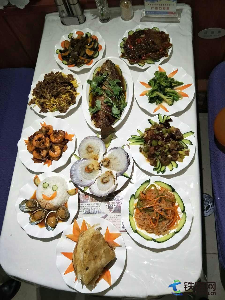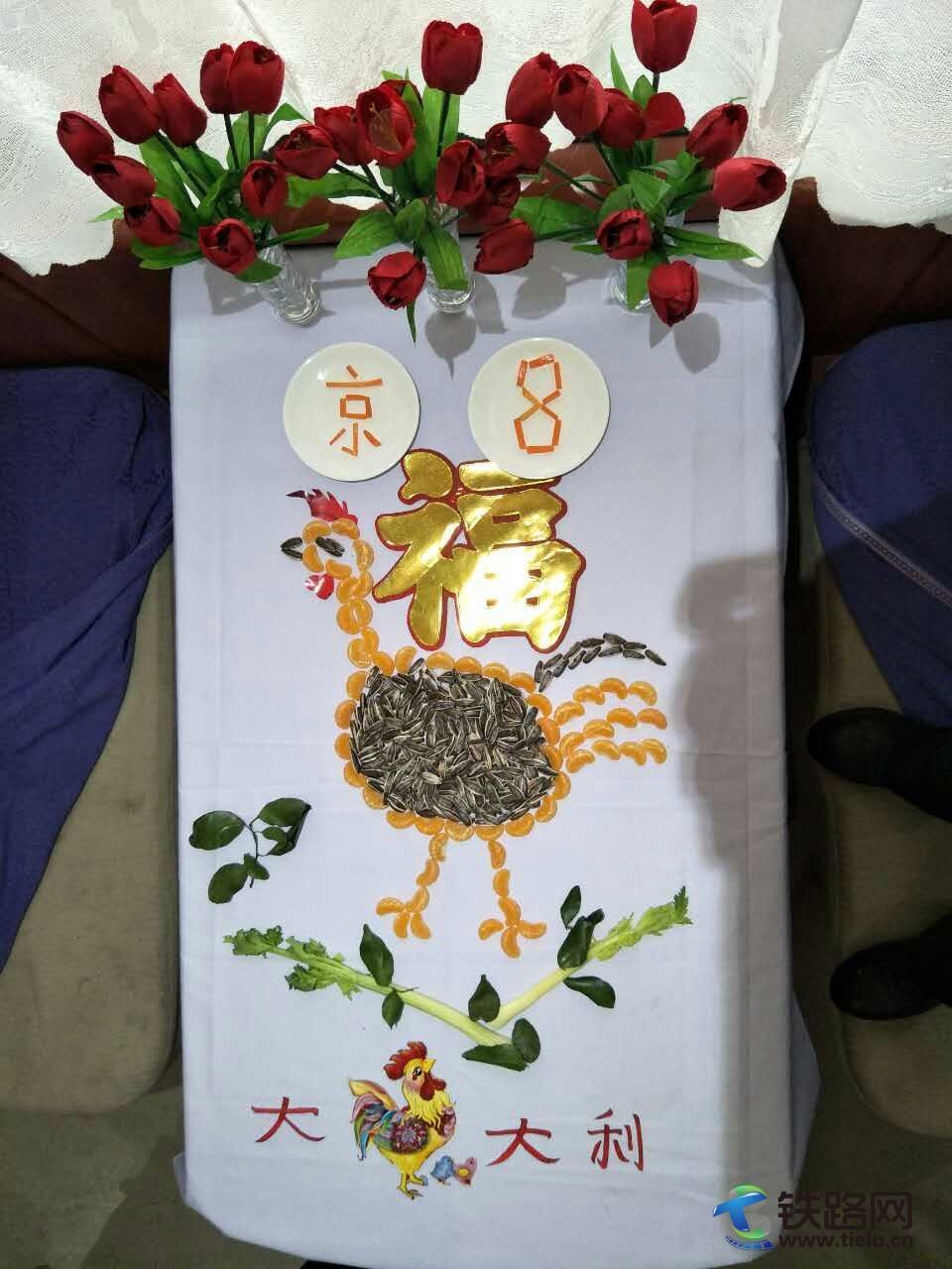 晚上8點(diǎn)左右,等旅客們基本用完餐,張鳳生又開(kāi)始忙了,在后臺(tái)里忙著切菜、炒菜……就只為給乘務(wù)員們準(zhǔn)備一桌豐盛的年夜飯。瞧那,一盤(pán)盤(pán)秀色可餐的擺盤(pán),一道道精美絕倫的菜品,就這樣呈現(xiàn)在了我們的面前。大家的氣氛也熱鬧起來(lái)了,大家邊吃邊聊,說(shuō)說(shuō)笑笑,聊聊家庭,聊聊新年愿望,其樂(lè)融融。還有乘務(wù)員們自編自導(dǎo)的小節(jié)目。忙活了半天的張鳳生從后臺(tái)出來(lái),一同與大家吃著自己做的的“年夜飯”。