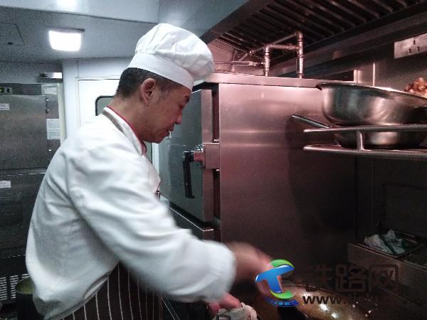 雖然除夕夜車(chē)上的旅客不多,但張鳳生還是要從下午三點(diǎn)多就開(kāi)始準(zhǔn)備,在只有幾平方米的狹長(zhǎng)廚房里,從事著自己一天的工作。