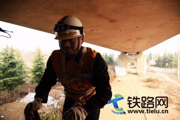數九寒天,中原地區天寒地凍。在高架橋橋墩上從事檢修作業,風無遮攔,寒風嗖嗖的身邊穿過,盡管他們都穿著厚厚的保暖衣褲、戴上防寒手套,一次工作長達4個小時,但腳手還是被凍的冰涼冰涼。尤其是春運期間,為保證高密度通車情況下設備的絕對安全。白天,他們腰系安全繩,頭戴安全帽和照明燈,通過架設懸梯,攀爬到距離地面幾米十幾米高的橋墩上,頂著刺骨寒風,檢查橋墩、橋臺和橋梁支座。通過梁體出入口,再進入到陰暗寒冷的橋梁“肚子”里,檢查梁體裂紋、損害等設備病害。洛陽工務段龍門橋隧車間主任閆江說:“你像這種數九寒天的天氣,我們一般作業時間都是在4個小時以上,穿再厚的衣服,4個小時下來全身都凍透了。但是我們看到每一趟動車安全正點通過,旅客能夠順利到達目的地,我們就感覺所有的工作都值了”。