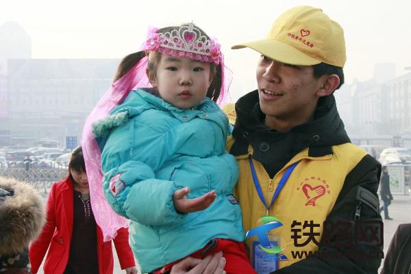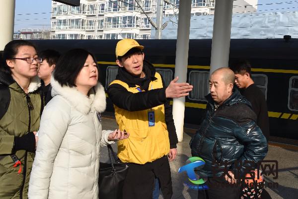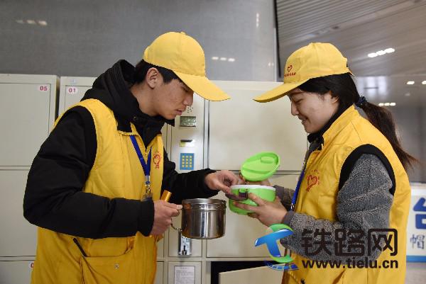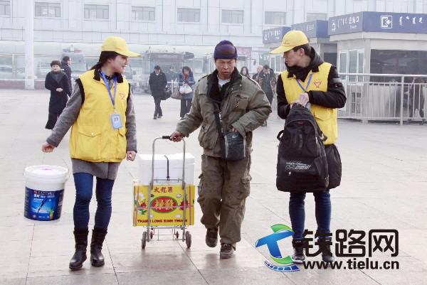 1.呼鐵青年志愿者馬澤軒在呼和浩特火車站熱情給旅客拿行李。