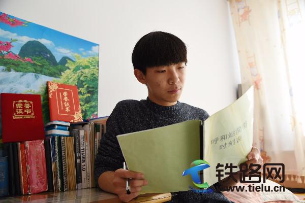 7.呼鐵青年志愿者馬澤軒在家做足車次信息和進站攻略等功課。