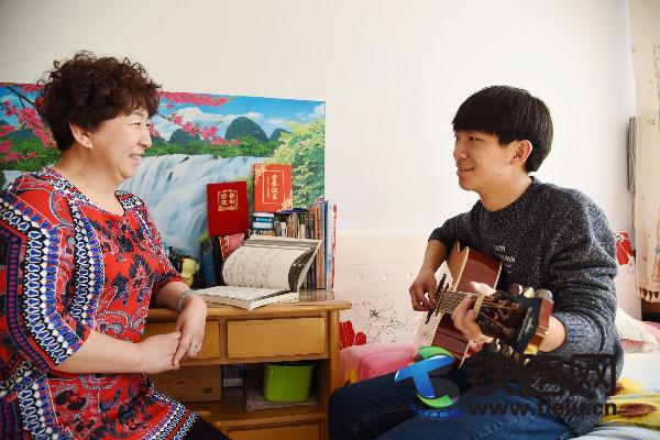 8.呼鐵青年志愿者馬澤軒彈吉它給母親解悶。