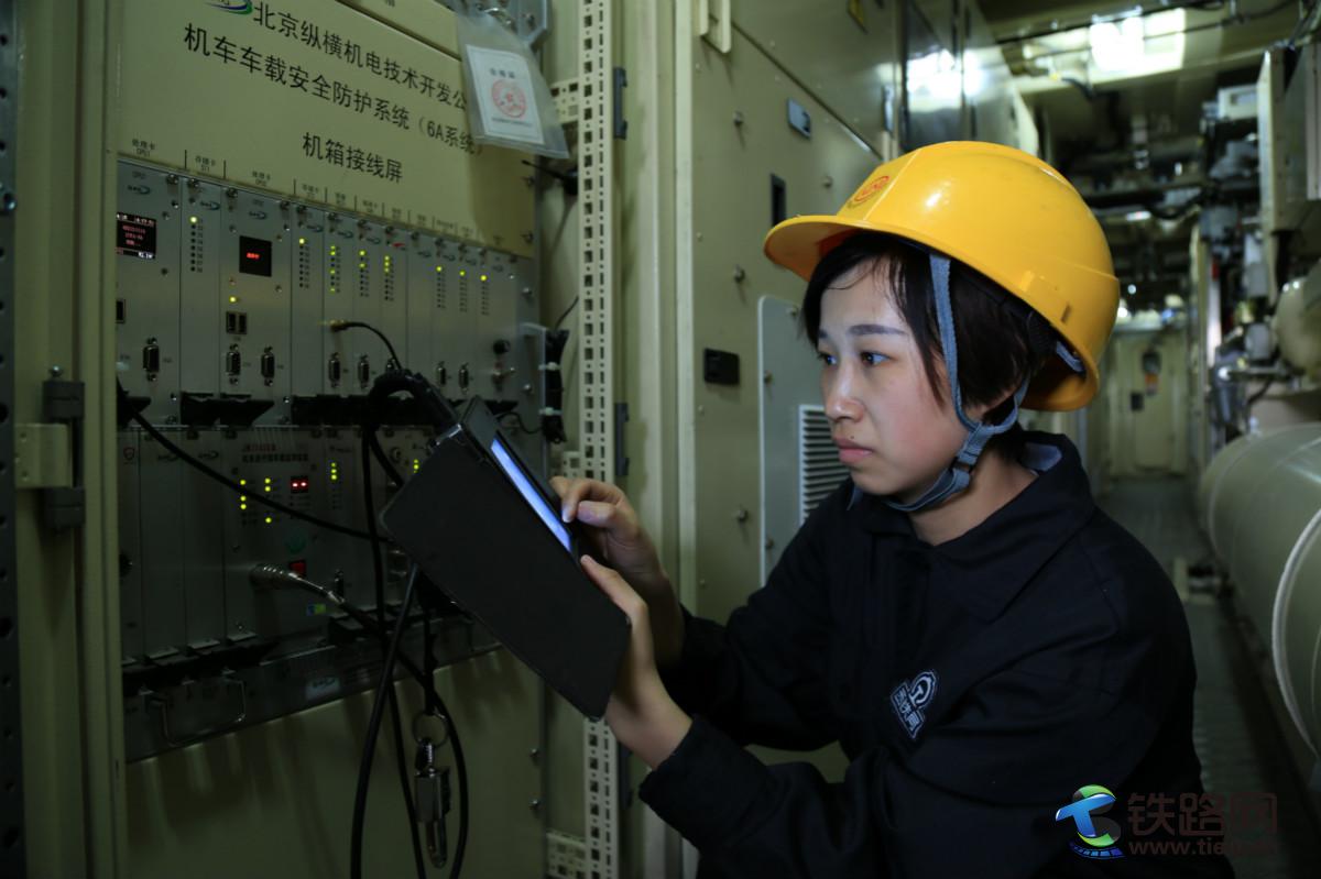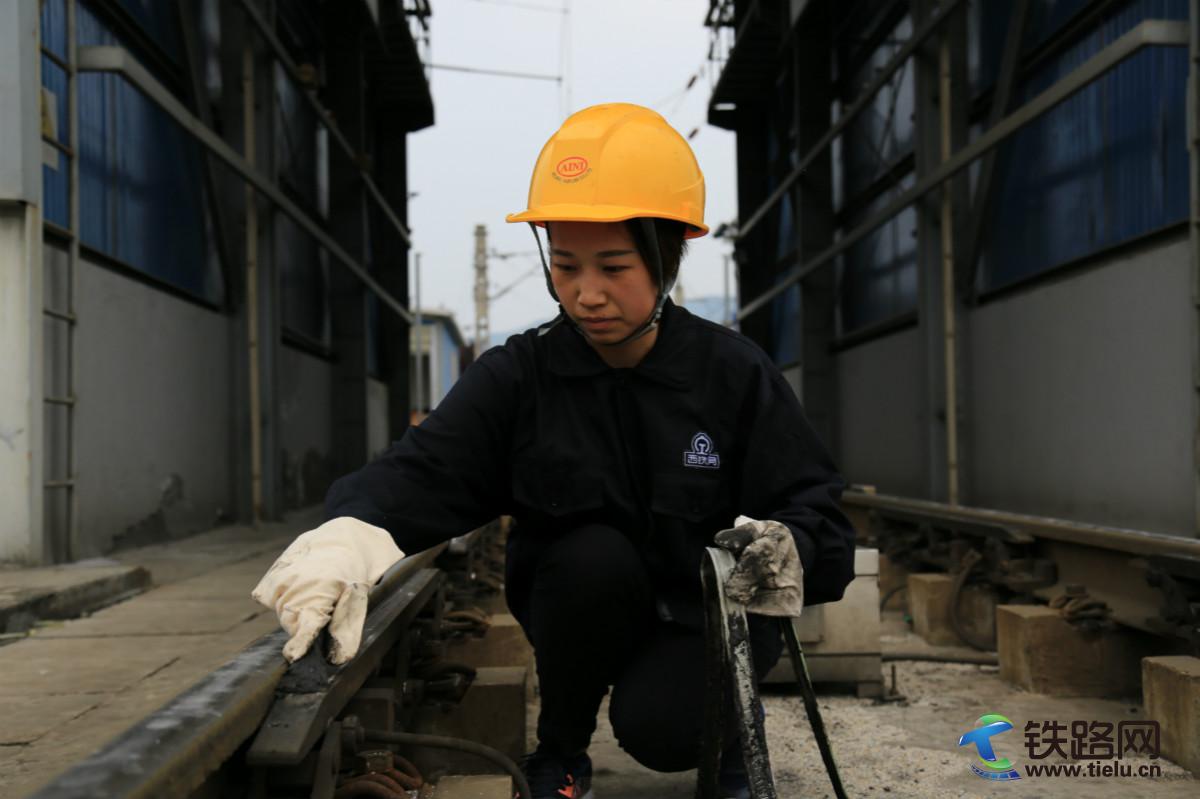 “我們在當白班時,要在作業空擋步行一公里對入庫線上的走行部、弓網檢測地面設備及控制系統進行日常檢查維護。遇到入庫機車陡增時,還要上車協助轉儲檢測數據,以保證機車在規定的整備時間內出庫牽引列車。”朱糧婧頭戴安全帽,在設置好安全防護后,拿起小鐵鏟賣力地鏟起輪對踏面擦傷壓力測試桿上的油膩。她明白這些機車輪緣留下的油膩如果不及時清除,就會造成測試數據不準確,直接威脅到行車安全。