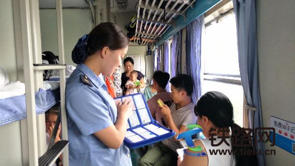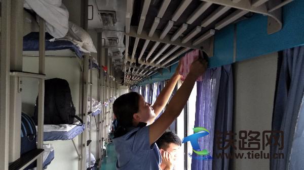 已經單獨乘務兩趟車了,薛玉晶的工作受到了列車長和乘務員以及旅客的認可。從接車后的車門、車窗安全卡控,到臥具備品清點擺放,途中小桌、窗臺的擦抹、車廂地面的清掃,廁所及時沖刷,她做的一絲不茍。工作中不懂不會的,她會及時向列車長和同事請教。旅途中面帶微笑為旅客服務是她的常態,照顧車廂中的重點旅客,老人和兒童是她重點服務的對象,為旅客介紹安全常識。她所在的13號車廂衛生干凈整潔,旅客乘坐的舒適愉悅。在這炎炎夏日里,薛玉晶的服務為旅客們送去一絲清涼!