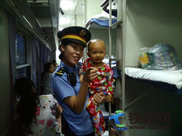 7月中旬,一位帶著剛出生不久的嬰兒的警嫂乘車去庫爾勒看望身在反恐一線的丈夫,面對她懷中哭鬧不止的孩子,警嫂和孩子一樣情緒變化不安焦慮,張車長注意到了這位獨自帶孩子的警嫂,便主動與之攀談,在她的關懷下緩解了警嫂的不安情緒,她還熟練的抱起寶寶逗他開心,聊天過程中得知,寶寶已經有半年沒見到父親了,自從開通成都直達庫爾勒的列車,團圓之路也變得更加順暢了。