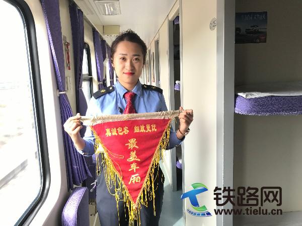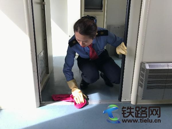 走進她的車廂,窗明壁凈,整齊有序,窗簾擺掛整齊,地面掃拖干凈,果皮盤擦抹干凈,行李物品擺放整齊有序,洗臉間干燥無水澤,廁所沖刷及時無異味兒,給人很舒服的感覺。
