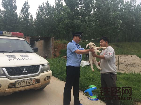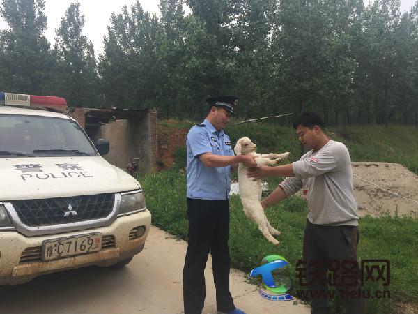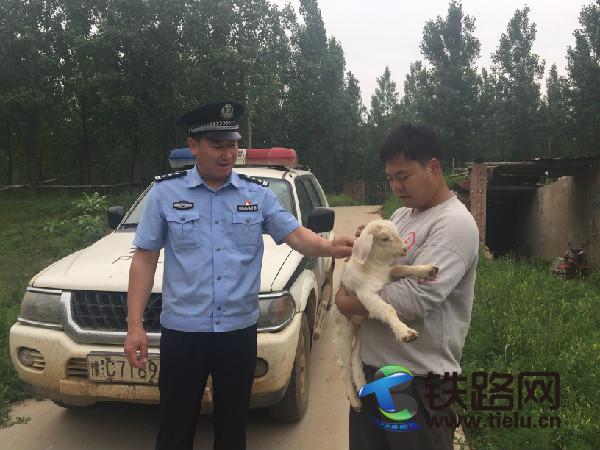 這一切得從5月30日上午說起……當(dāng)天,洛陽龍門站派出所副所長劉勃在沿線警務(wù)區(qū)帶領(lǐng)民警巡查線路時,發(fā)現(xiàn)一只失群的小羊羔臥在路邊,呼喊數(shù)聲后無人應(yīng)答。劉所長想到失主的焦急心情,同時考慮到失群的羊羔可能會沖進高鐵線路對列車構(gòu)成威脅,便當(dāng)機立斷,先將小羊羔帶到車上。待巡線結(jié)束后,劉所長不顧天氣炎熱,便馬不停蹄開始尋找失主,通過數(shù)小時的走訪詢問,終于找到了這只"越獄"小羊羔的主人——原來失主是附近村莊的一戶村民,家里的房子年因年久失修出現(xiàn)了裂縫,這只小羊羔憑借著剛剛出生13天的“苗條”身材,偷偷從墻壁的縫隙中“越獄”了。看到丟失的小羊羔,失主激動地握著劉所長的手說:“這是一只小母羊,這要一丟,一年算是白干了。”劉所長看到物歸其主也欣慰的說:“為人民服務(wù)本來就是我們的天職,不過,你們也要多操心,一定要看護好自家的牲畜,這不僅是在看護自己的財產(chǎn)也是在看護鐵路旅客的生命安全埃”