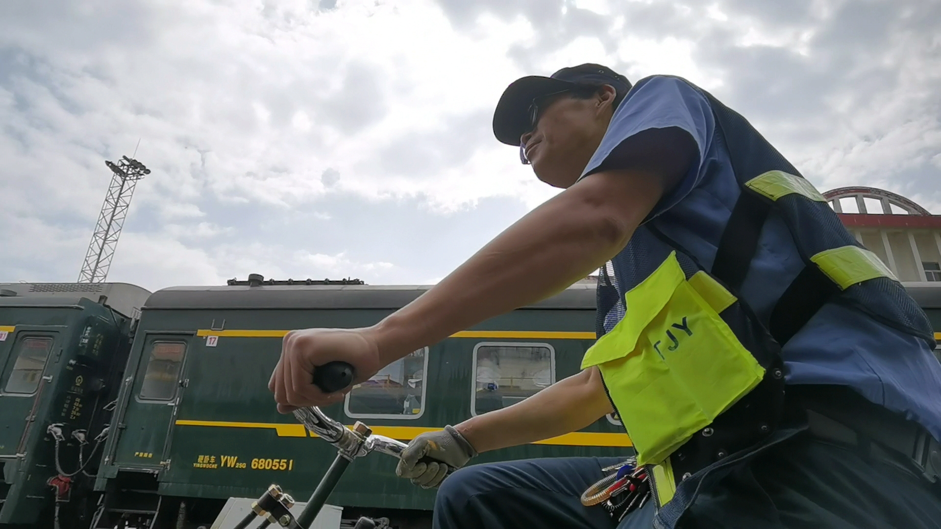他是一名檢車員,和工友們負責火車上部設(shè)施以及車體外側(cè)和車門車窗的維修保養(yǎng)。在火車秋季大整修期間,班組工作量比日常增加了一倍以上,人員又及其緊張,他看在眼里,也記在了心里。